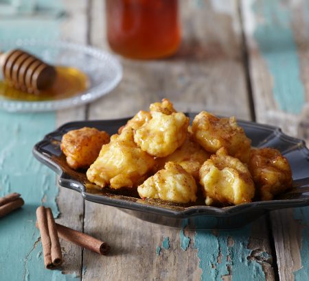 - Heat some Horio PDO Kalamata olive oil in a pot. With a small spoon, take some dough, and put it in the pot. Turn over the doughnuts in order fry on both sides but be careful not to burn. Repeat the process until there is no dough left.